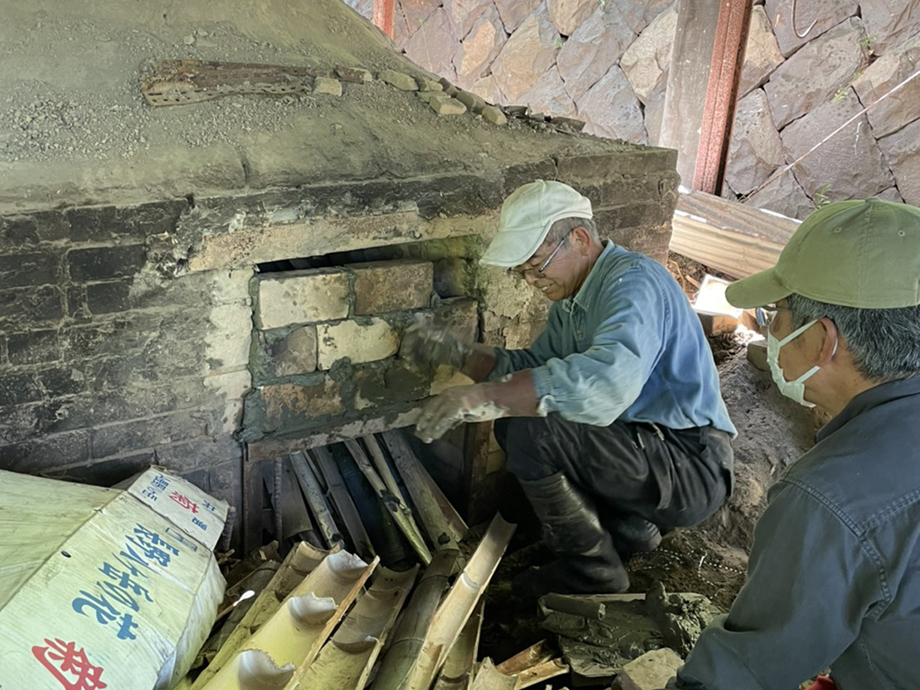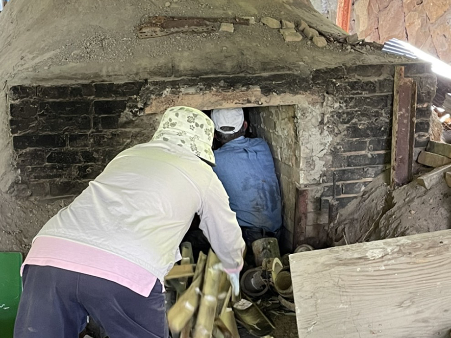 数時間かけて300℃まで温度をあげて入口を閉じ、丸一日温度管理をして、一週間後、竹炭を取り出すとのこと。